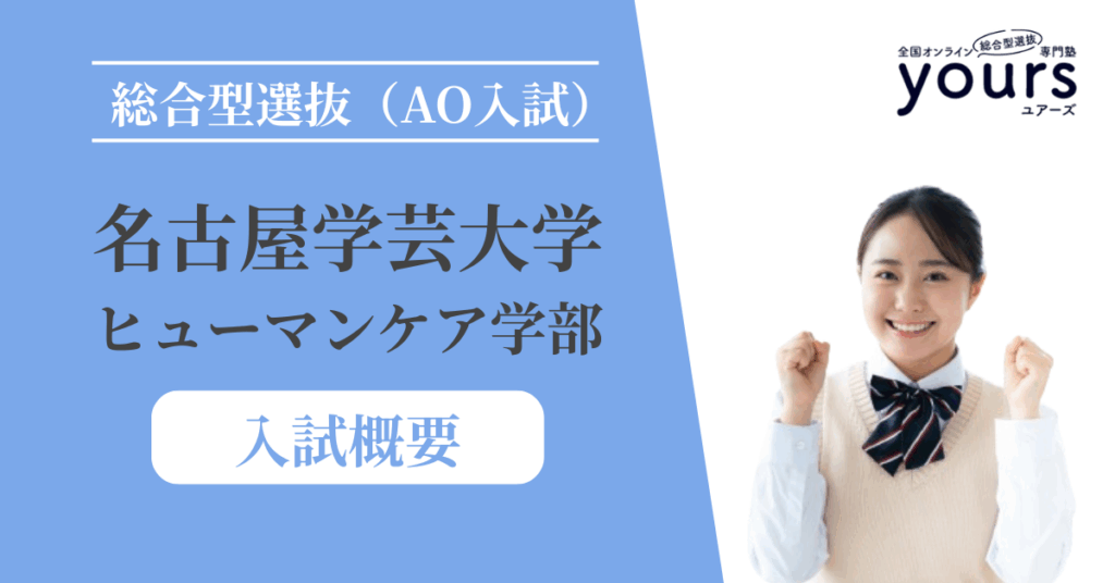 「志望大学は決まっているけれど、情報が散らばっていてわかりにくい…」 「総合型選抜の具体的な選考内容を知りたい!」 そんな方に必見! 本記事では、名古屋学芸大学 ヒューマンケア学部の総合型選抜の入試概要について、選考内容や入試日程などの詳細を... -