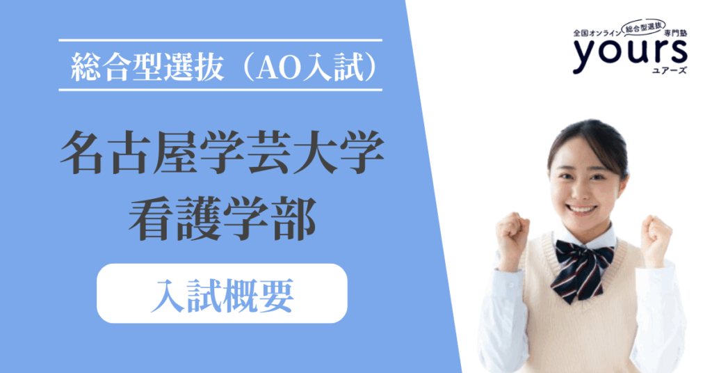 「志望大学は決まっているけれど、情報が散らばっていてわかりにくい…」 「総合型選抜の具体的な選考内容を知りたい!」 そんな方に必見! 本記事では、名古屋学芸大学 看護学部の総合型選抜の入試概要について、選考内容や入試日程などの詳細をご説明しま... -